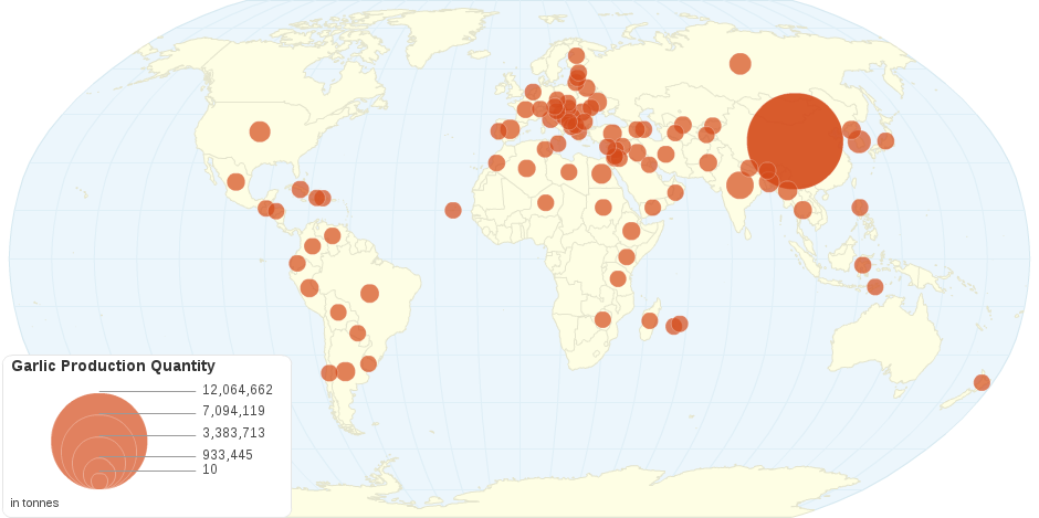 This video provides a visual of how garlic production has been predominant in China and increased in other countries around the world since 1961: https://www.youtube.com/watch?v=JzTRXc6lWc4